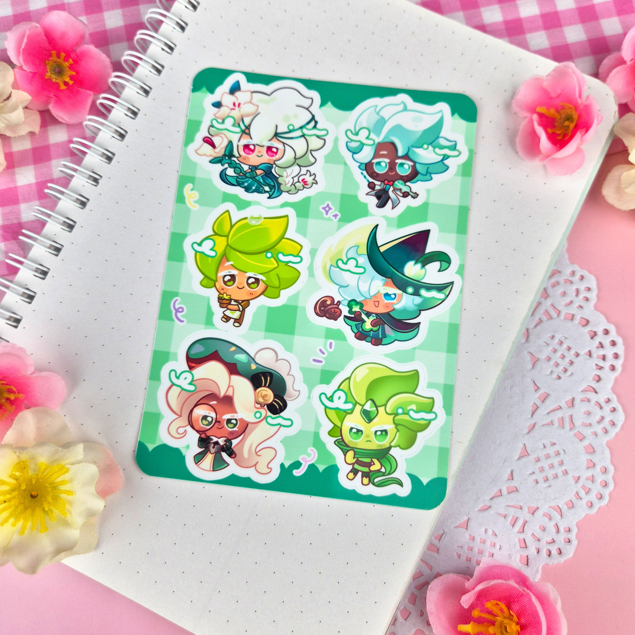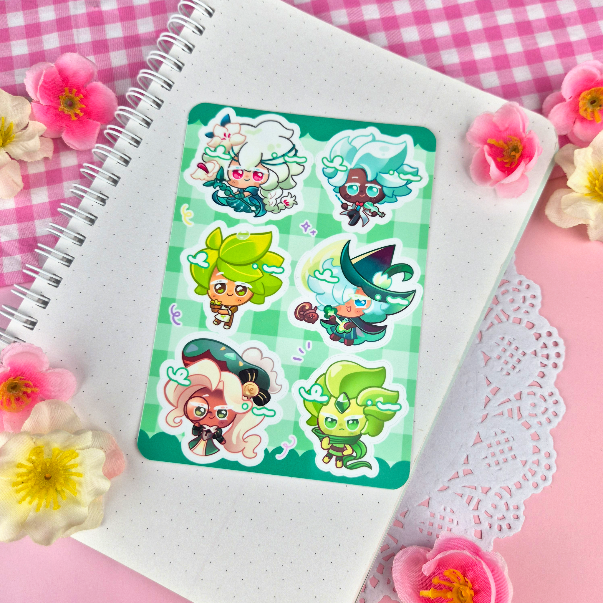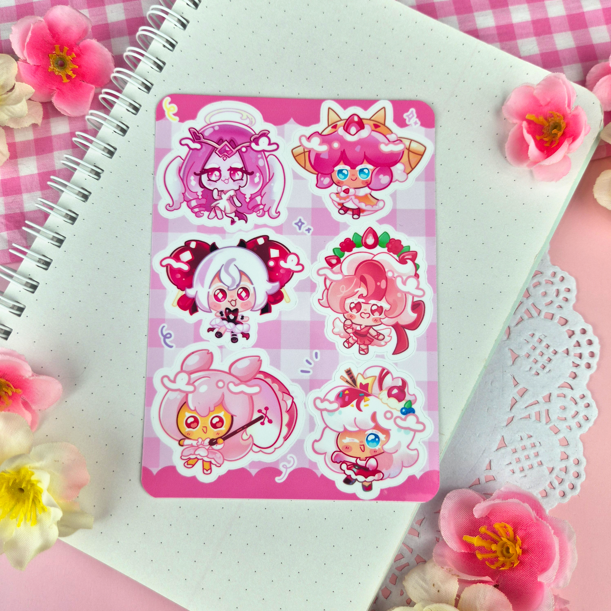 This sticker sheet contains 6 stickers, each sheet is around 3.5x5.5 Inches. Each individual sticker will be approximately 1-2 inches when peeled!